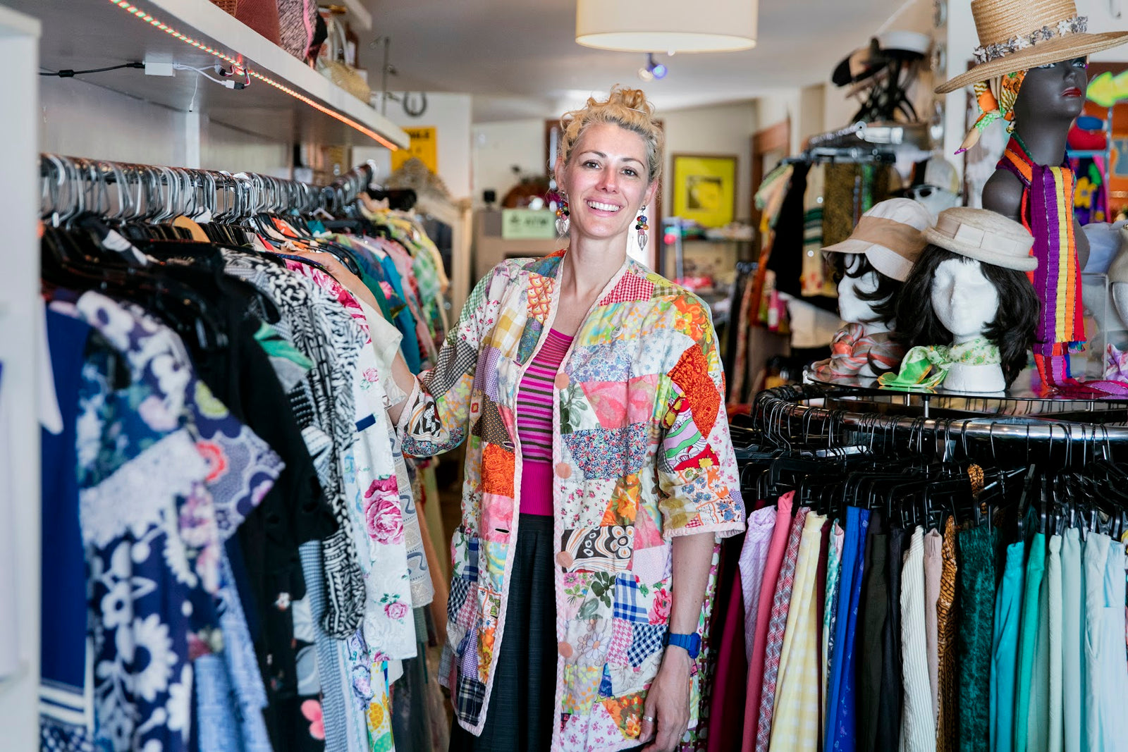 We look for bright, quirky, good- weird and body inclusive eccentric fashion that makes an impact. One of my favorite parts of selling second hand is hearing that the garment purchased here is their favorite and they wear it all the time.